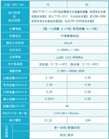產品概述:立式水表結構新穎,全防水設計,適用于下進上出型水表安裝環境。適用環境:高層樓宇下進水功能特點:◇獨 立密封設計:獨特的防水技術,無外漏電極,密封性好,徹底解決防水、防潮難題。◇電路采用超低功耗技術,使內附電池使用壽命大大提 高,保證使用6年以上。◇閥門自動排污、防堵、防銹技術:閥門定時自動進行開關動作,有效利用管道壓力造成的水的瞬時沖力,實現閥門的自動排污,避免閥門結垢、銹死等現象。◇獨 立電池倉設計:方便用戶更換電池。◇防外電、磁攻擊技術:當外部進行強電、磁攻擊時,水表會自動關閥,并顯示閥關。◇剩余水量報 警提示功能:當剩余水量達到報 警值時,自動關閉閥門并顯示“請購水”、“閥關”,提醒用戶購水,此時可再刷一次用戶卡,即可使用剩余水量,以免因水量不足影響用戶用水。◇數據轉移功能:當水表出現故障后可以用工程卡將故障表數據轉移到新表中,從而達到不影響用戶正常用水的目的。◇支持水、電、暖一卡 通設計,一張用戶卡可以管理多只水表,對于一戶多表的用戶可謂十分方便。◇電池欠壓指示:電量不足時,液晶顯示“換電池”并自動關閥,提醒用戶更換電池。技術參數: